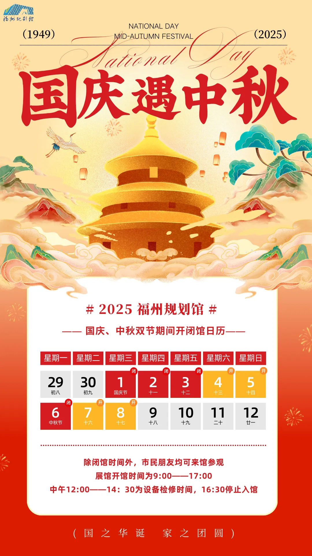 福州规划馆国庆、中秋双节期间开闭馆公告