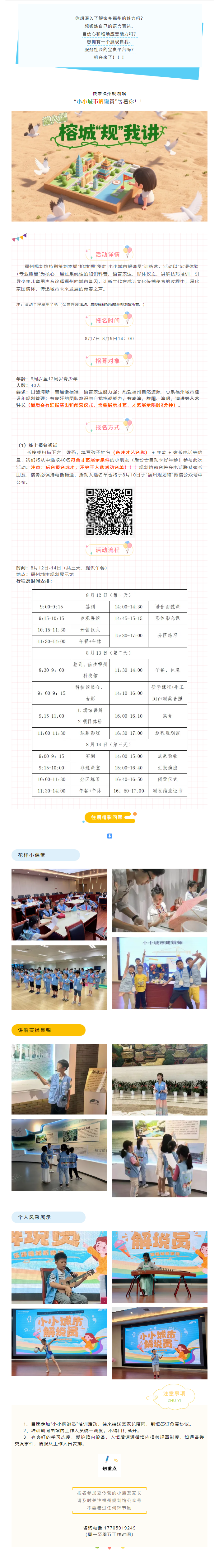 活动报名 |福州规划馆第六届“小小城市解说员”已经准备启动,快来报名吧!